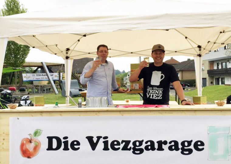 das sind die Viez-Liebhaber Stephan Wollscheid und Jochen Hüther. Im Herbst 2014 haben wir begonnen, aus Spaß an der Freud, den Saft von unseren naturbelassenen Hochwaldäpfeln zu vergären. Schon die ersten 200 Liter Viez wurden ein „Kracher“. Alle Viezliebhaber in unserem Bekanntenkreis rissen uns förmlich die „Porzen“ aus der Hand. (Porz = Original Viez-Trinkgefäß der Region aus Porzellan mit 0,4 Liter Inhalt)
